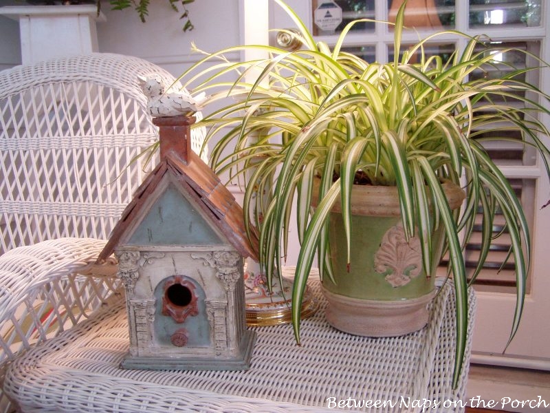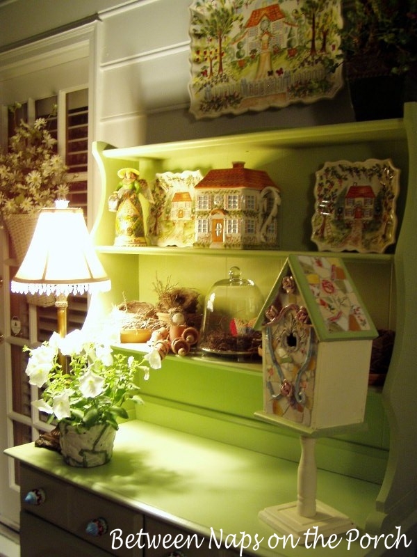 In the picture below, you'll see a hutch I bought for less than $100 and refurbished, just for the porch. You can view the transformation of the hutch, HERE.