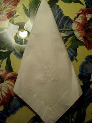 I'm not sure why, but I love anything that's monogrammed. A few weeks ago, I went online to check the pricing on embroidery/monogramming machines...thought it would be fun to monogram some of my existing linens. Wow, don't think I'll be ordering one of those gadgets. The prices were very expensive...even on good ole e-Bay. ~SIGH~