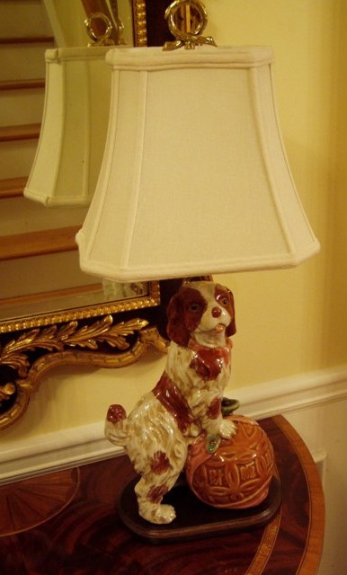 ...have made into a lamp. I'd been shopping for a small lamp to go on this table in my family room for some time. The room has a bit of a hunt/canine theme, so I knew this little guy would fit right in! :-)
