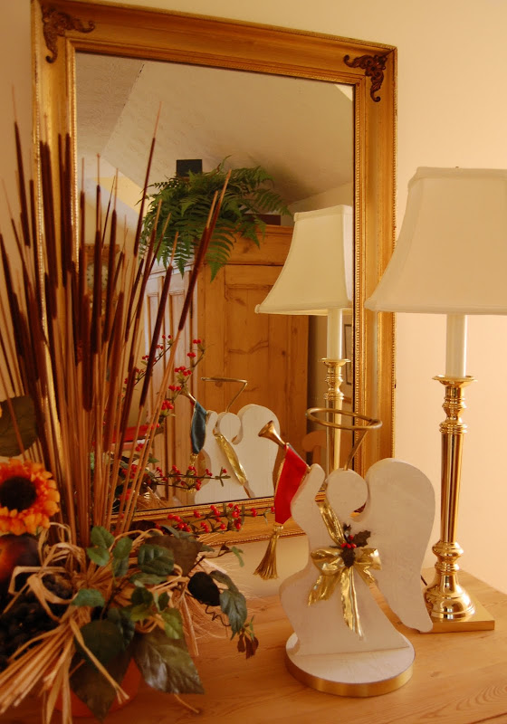 This little doll house was decorated for Christmas when I first discovered it at a local antique shop. I replaced the decorations with some I made, since the ones it had were crumbling apart with age. Now, I'm toying with the idea of removing the Christmas decorations so it will work well for any time of year. Ummm, maybe I can find a way to attach the decorations just for Christmas each year.