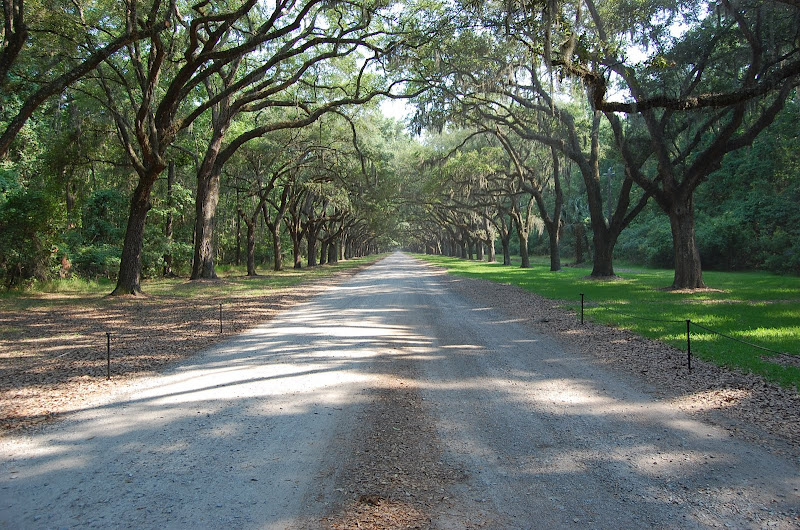 Oak Avenue is a long, straight road, lined with four-hundred (400) Live Oaks. It is 1.5 miles long and it's beautiful, mysterious, eerie, enchanting, magical and a must see if you're ever in Savannah. I took this first pic near the entrance after 3 cars had just left. I loved the mysterious feel of the avenue with the dust from the cars still lingering in the air.