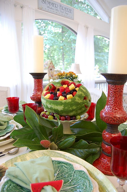 This past Tablescape Thursday, I shared a table setting with a carved watermelon centerpiece.