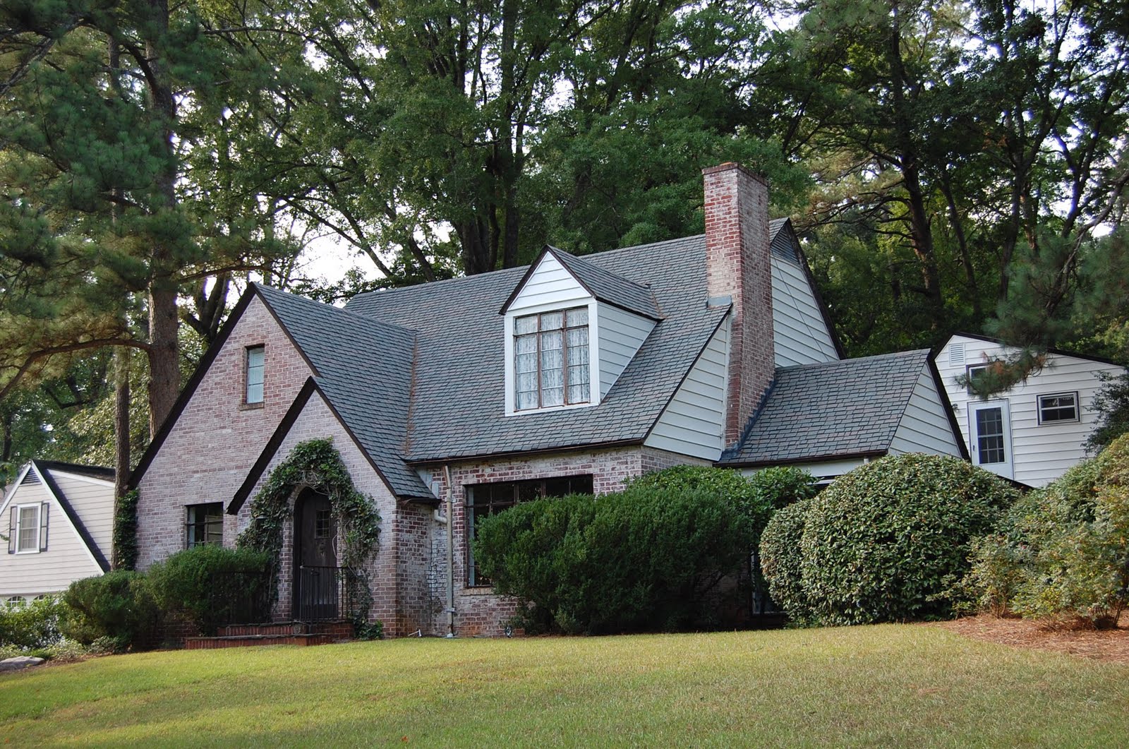 This is one of my favorite homes in Avondale Estates. I think if I lived here I'd dig out/trim away some of the shrubbery to showcase this adorable cottage even more.